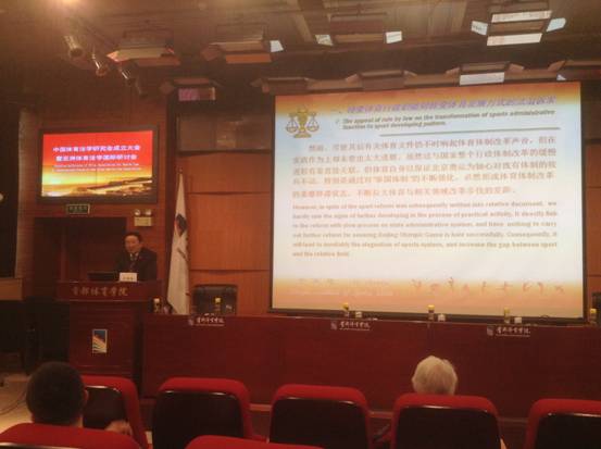 来自中国、日本、韩国、荷兰、波兰和我国台湾地区的160余位体育法学专家学者参加了亚洲体育法学国际研讨会。研讨会以“体育法治的理论与实践——推动改革创新,破解发展难题”为主题,围绕体育法基础理论、职业体育、体育经营活动、体育社会团体等体育领域热点法律问题进行了学术交流。中外学者共4人做大会报告、25人做分组报告。我院于善旭教授以《法治:推进中国体育行政职能转变的必然进路》为题,代表中国体育法学界做了大会主题报告;闫成栋老师和吕伟老师分别进行了题为《职业体育俱乐部社会责任的法学界定》和《我国职业体育领域腐败犯罪的成因探讨》的分组报告。